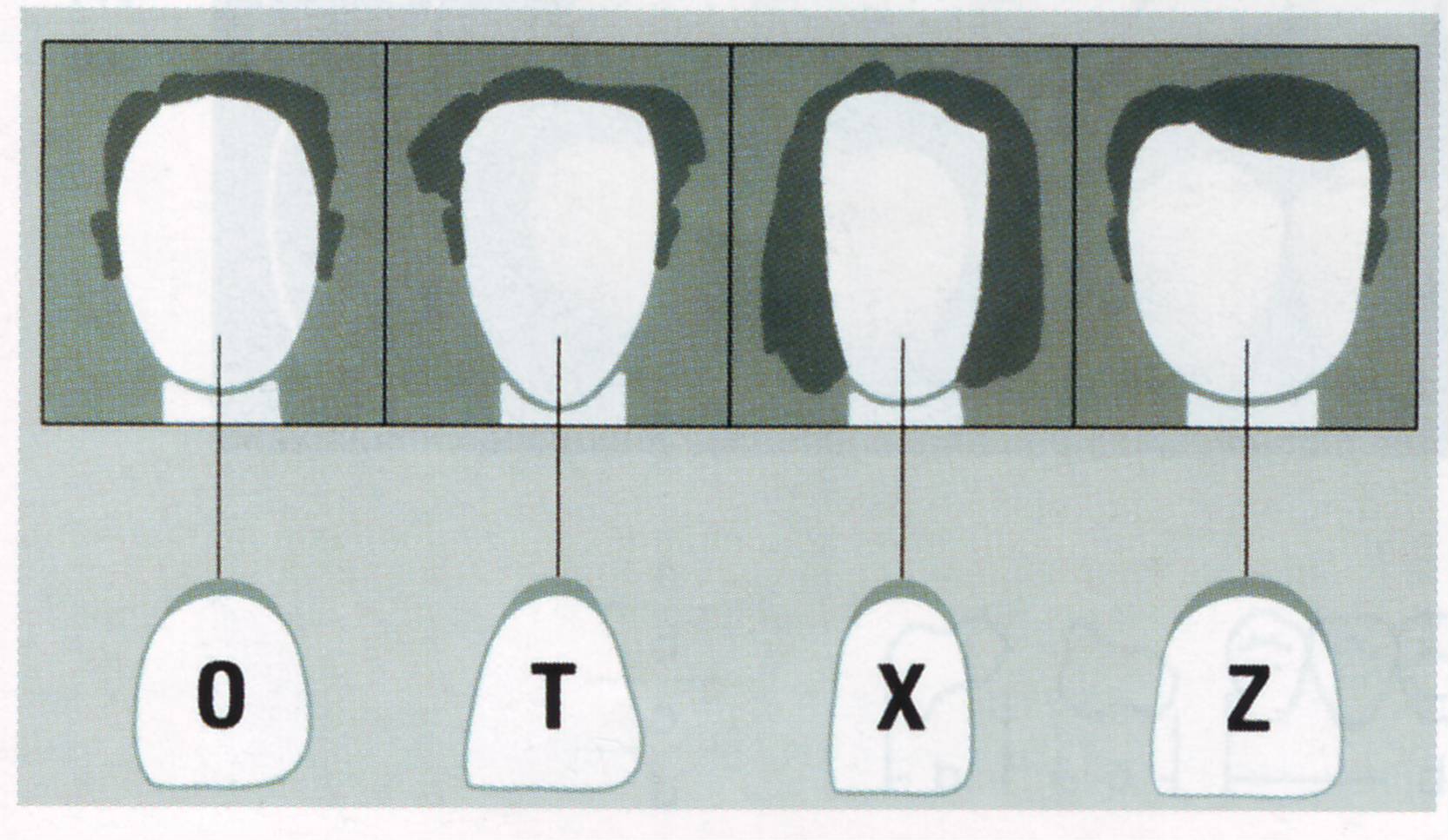 Pryskyřičné zuby se dodávají v sadách (garniturách) – frontální a laterální nebo kompletní, tzv. osmadvacítky pro obě totální protézy najednou, v mnoha barevných odstínech a velikostech. Každá sada nese označení tvaru a barvy.